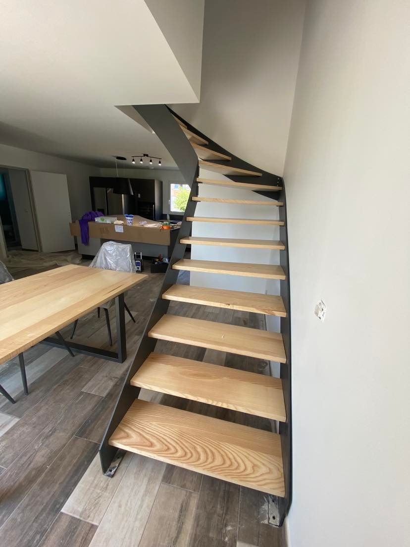 Donnez un style épuré et industriel à votre intérieur, grâce à nos escaliers en métal sur mesure. Alliez moderne et brut avec le mélange du bois et du métal.
